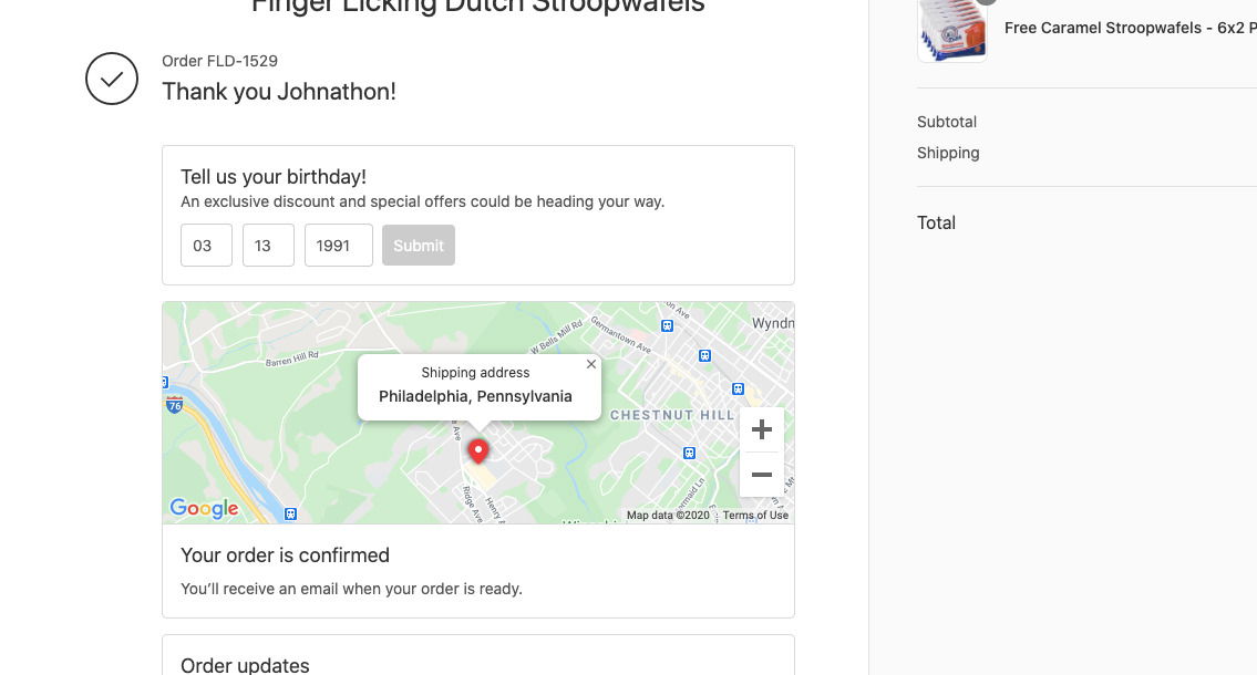 Birthday Prompt allows you to collect customers' birthdays after a successful checkout.