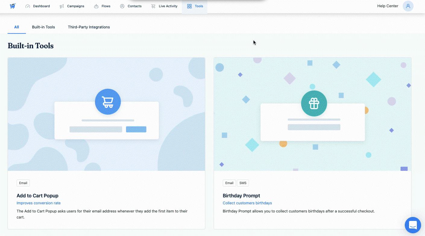 From the top menu, select "Tools" and then "Birthday Prompt" under Build-in Tools.