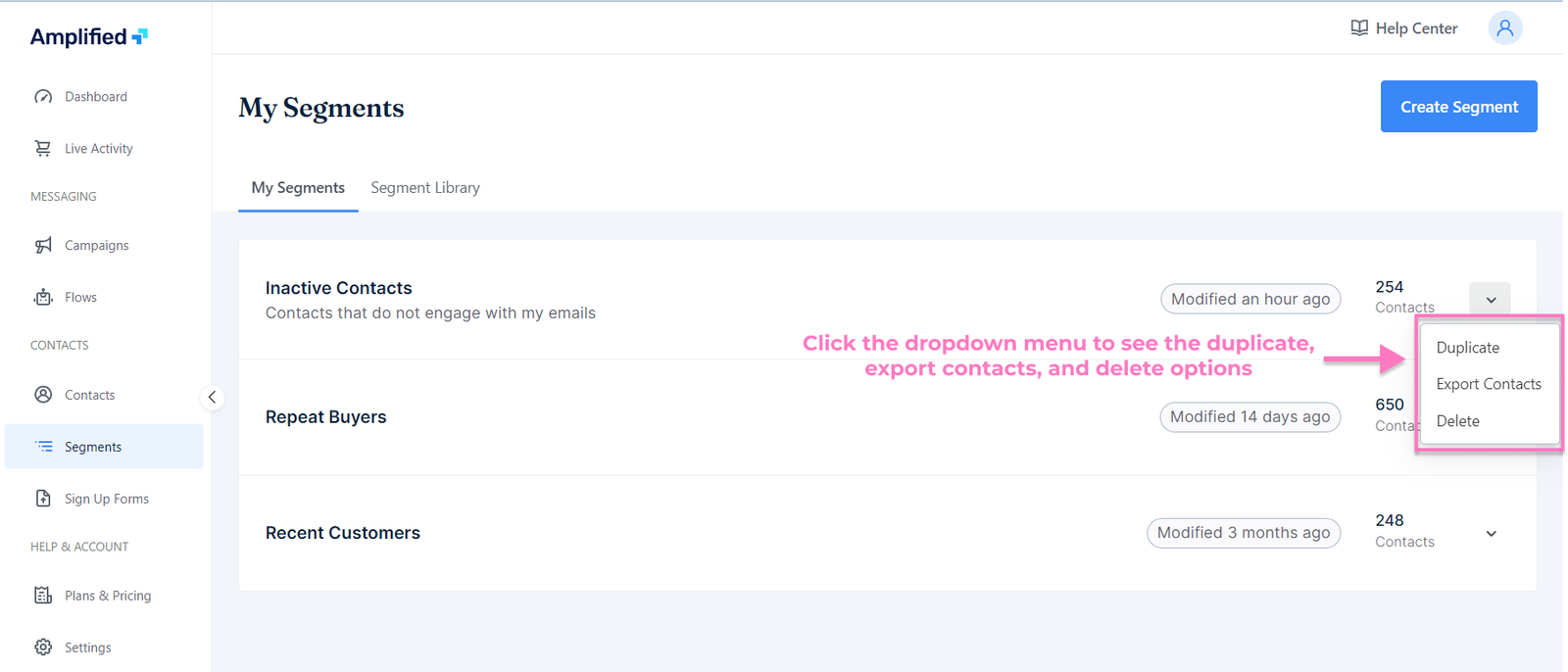 Once a segment has been created, it can be duplicated, deleted, and exported for further use.