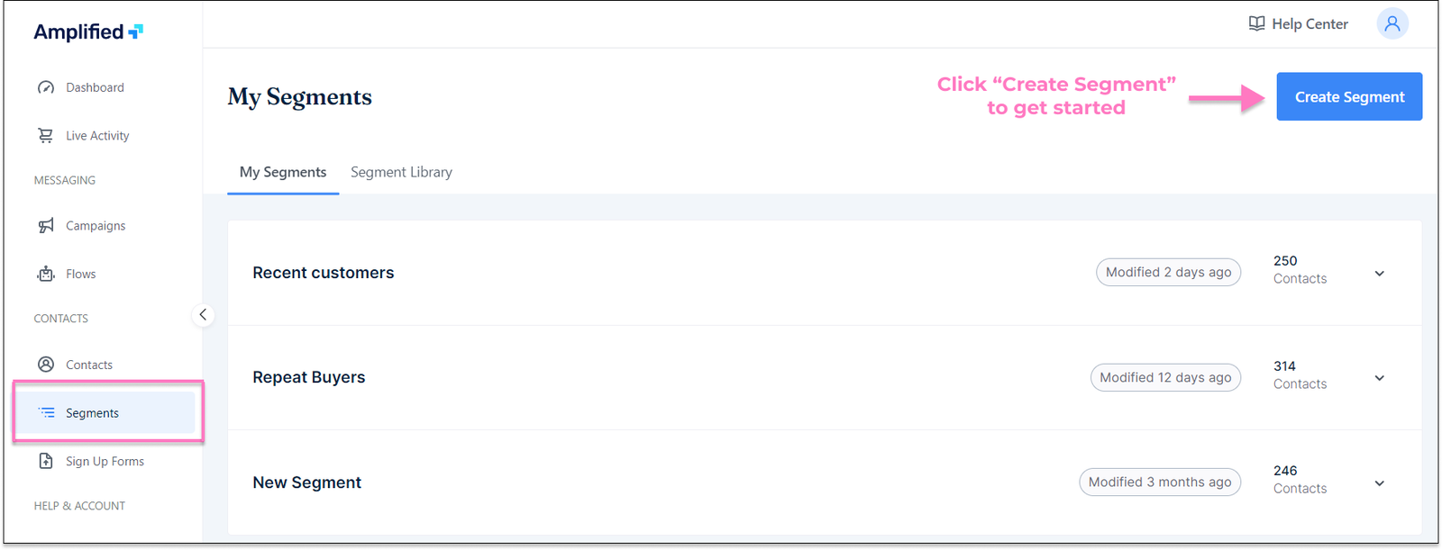 - From the sidebar menu, select “Segments”.