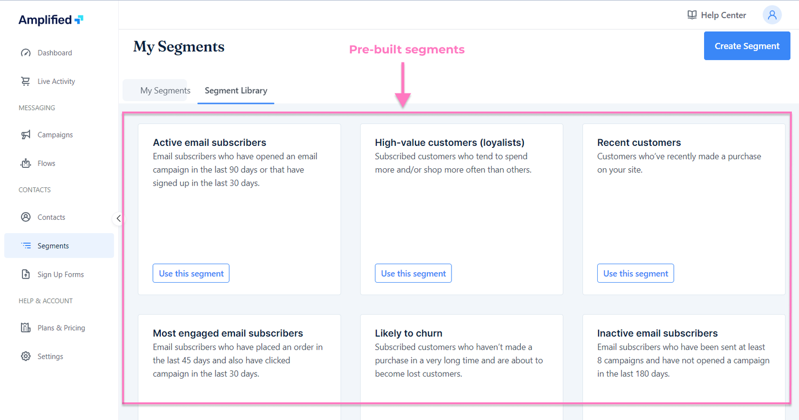 Pre-built segments in Amplified