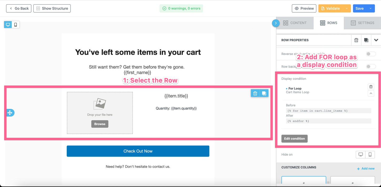 See the graphic below on how to add the FOR loop as a display condition to the the Row block