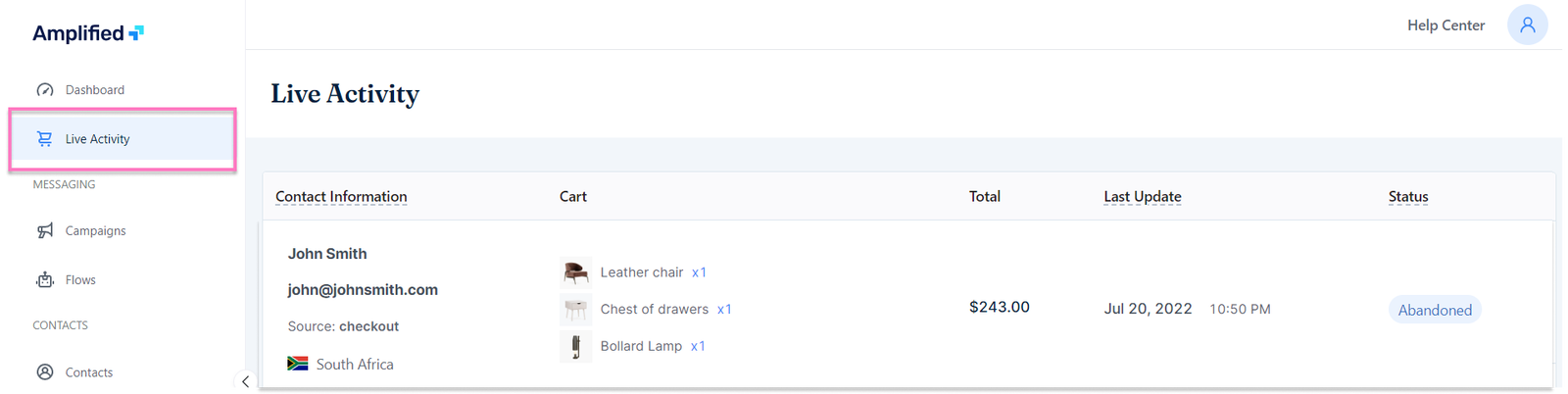 Live Activity is your store's heartbeat—a place where you can see in real-time exactly what your customers are doing in your store: purchases, abandoned carts, the number of items added to the cart, and more. With this information at your fingertips, you can make actionable decisions about how to better engage with your customers and convert more of them into loyal shoppers.