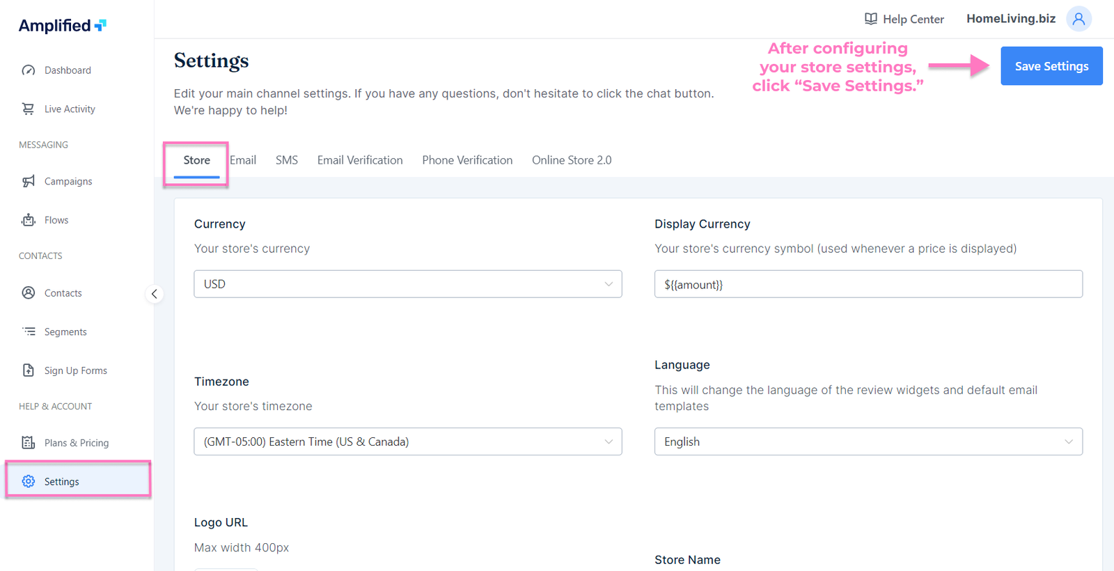 Step 1: Configure your Store Settings
