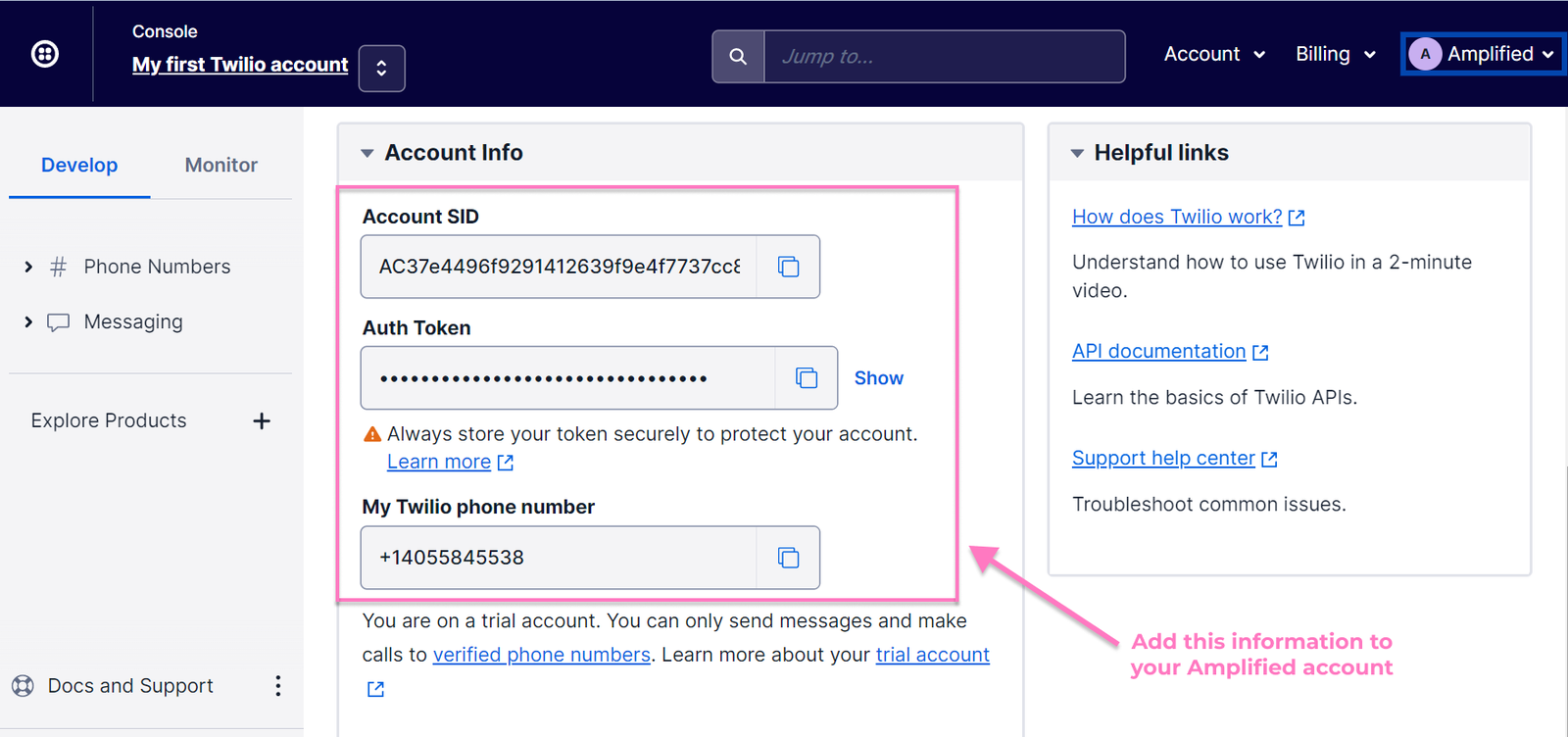 To get started with our SMS and MMS messaging service, you will need to sign up for a Twilio account if you don't already have one. Once your Twilio account has been set up, you can add the credentials to your Amplified account. Once the two accounts are connected, you'll be able to start sending SMS and MMS messages through our platform with your Twilio phone number.